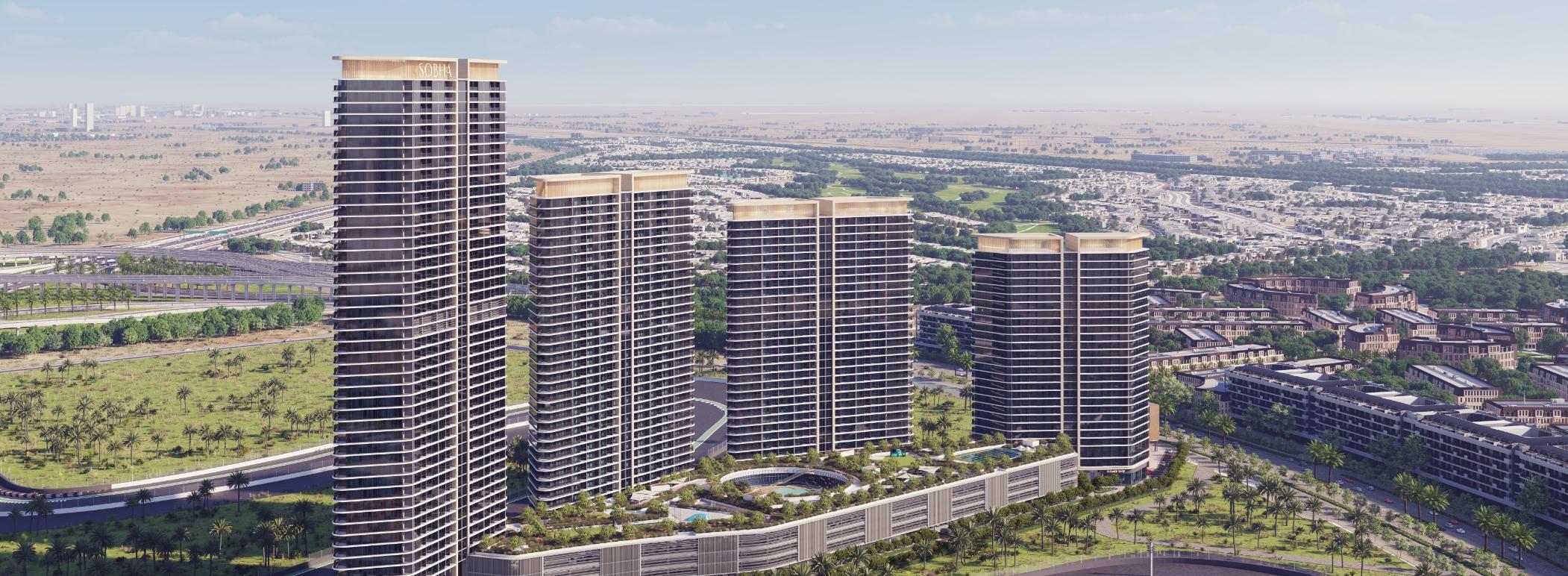 Sobha Solis is your perfect getaway right in the heart of Motor City, where luxury meets adventure. This amazing residential development boasts a fantastic selection of 1 to 3-bedroom apartments, all beautifully arranged in four unique towers. What’s even better? These towers are connected by a shared podium just for residents, giving you a peaceful escape from the busy city life.